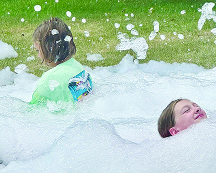 Last Friday, July 11th at the Elizabeth Titus Memorial Library in Sullivan, participants in the library’s summer reading program arrived to enjoy their reward for completing five weeks of their reading logs: a foam and slime party. Laughing, joyful children could be found lounging in the foam bed, chasing bubbles or slinging slime into the air or at each other. The colorful slime adorned clothing, skin and hair, with one young lady exclaiming, “I’m a frog!” Parents stood nearby grinning and supervising the festivities as slime flew and bubbles abounded - with towels and clean-up supplies on hand. It was a hot day, so the final clean up at the end with the garden hose was a welcome cooling off for all.